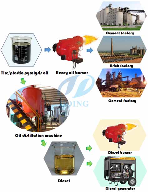 Pyrolysis Oil There is need for greener fuel alternatives due to fossil fuel depletion, increasing oil prices and emission challenges. Tyre pyrolysis liquids production pathways with their wide range of potential applications are as shown :