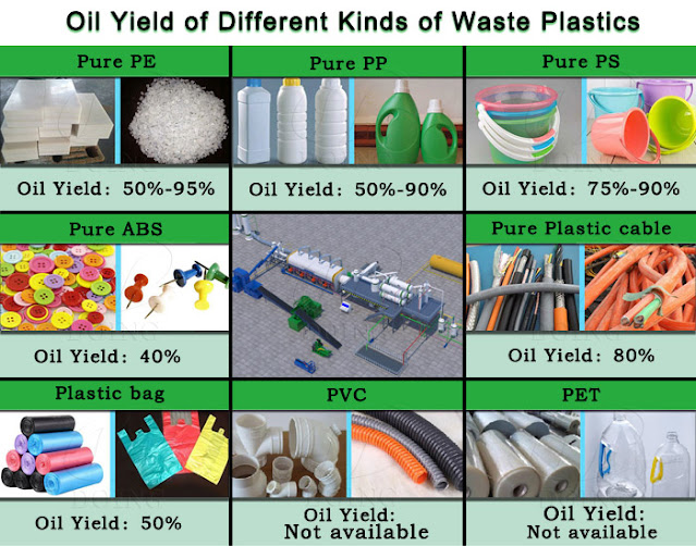 There are various kinds of plastic bottles, for example, plastic bottles for liquid such as drinking water, milk, soda, motor oil and shampoo, and plastic bottles for dry products such as medications and nutritional supplements. The raw material of plastic bottles can be PET, PE,HDPE, LDPE, PS, PVC, etc.,among which PET plastic bottles are not suitable to get fuel oil by pyrolysis;PVC plastic bottles is ok, but since PVC is acidic, need to make the anticorrosive or stainless steel coating for the pyrolysis reactor; PE/HDPE/LDPE/PS plastic bottles are good raw material to recycle for money, since the oil yield of pure, clean and dry PE plastic bottles can reach 95%.